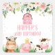 Fazenda Floral rosa Aniversário Favorável Sticker fazenda cor-de-rosa doce Tema de festa de aniversário com um autocolante cor-de-rosa, burro, porco, vaca e adorável arranjo floral rosa.