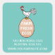 Ilustração de uma galinha em cima de um ovo com texto personalizado.