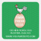 Ilustração de uma galinha em cima de um ovo com texto personalizado.