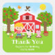 Este adesivo fofo e divertido apresenta um menino loiro de pele clara ao lado de um celeiro vermelho com um cata-vento de galo. Há adoráveis animais da fazenda, como uma vaca, porco e galinha. Ao fundo, há um céu azul brilhante, macieiras, sol, borboletas e margaridas. O texto combina fontes negrito e sem serifa para um visual elegante e moderno. Isso é perfeito para uma festa de aniversário com tema de fazenda.