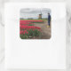 Adesivo Quadrado Fazendeiro inspecionando suas tulipas e moinhos de