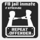 Adesivo Quadrado "FB JAIL INMATE" preso engraçado