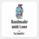 Feita à mão com adesivos de amor com uma ilustração de um esqueleto humorístico. Vestindo um chapéu, segurando uma bebida. Ele tem um grande sorriso no rosto. Bonita e assustadora diversão para o Halloween.