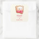 Adesivo Quadrado Feita com amor, Urso Bonito Rosto Vermelho