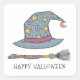 Adesivo Quadrado Feiticeiras com vassoura-de-bruxaria no Halloween