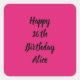 Adesivo Quadrado Feliz 16º aniversário, Pink Negro Nome Personaliza