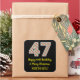 Este simples e divertido design de 25 de aniversário de dezembro, com tema natalício e tema de aniversário, apresenta um grande número de "47", com um padrão de listras vermelho/branco/verde. Também apresenta a mensagem "Feliz 47º aniversário e Feliz Natal", e um nome personalizável. O fundo é preto colorido. Os adesivos como este podem ser uma maneira divertida de preparar presentes que estão a ser dados a alguém que foi nascer no 25 de dezembro (Dia de Natal) e que está a celebrar o seu quarenta e sétimo aniversário. [~Z0000409]