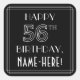 Este 1920 da década de 30 inspirou o estilo de deco de arte do aniversário, o design de adesivo quadrado com tema de aniversário tem a mensagem "HAPPY 56TH BIRTHDAY", além de um nome de destinatário editável. O número "56TH" tem uma aparência geométrica de rico, e há também uma fronteira multilinha em torno da mensagem de saudação de aniversário. Os autocolantes luxuosos como estes podem ser emitidos ou usados numa festa realizada para alguém em comemoração do seu cinquenta e sexto aniversário, ou talvez usados na preparação de presentes ou convites para tal evento. [~Z0000646]