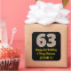 Esta divertida e simples design de 25 de aniversário de dezembro, com tema de Natal e tema de aniversário, apresenta um grande número "63", com um padrão verde/branco/vermelho de listras. Também apresenta a mensagem "Feliz 63º aniversário e Feliz Natal", e um nome editável. O fundo é preto colorido. Os adesivos como este podem ser uma maneira divertida de preparar presentes que estão a ser dados a alguém que foi nascer no dia de Natal (25 de dezembro) e que está a celebrar o seu sessenta e terceiro aniversário. [~Z0000409]