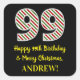 Adesivo Quadrado Feliz 99º aniversário e Feliz Natal, Nome Personal