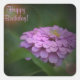 Estes adesivos de praça de aniversário felizes apresentam uma zinônia brilhante contra um fundo de som macio.