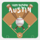 Adesivo Quadrado Feliz Aniversário do Campo de Beisebol Verde