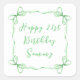 Este adesivo de aniversário feliz e giro apresenta uma bela faixa verde. O texto combina o script manuscrito e as fontes sans serif para uma aparência na moda e moderna.