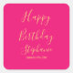 Adesivo Quadrado Feliz Aniversário Dourado Rosa Quente Nome Persona