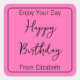 Adesivo Quadrado Feliz Aniversário e Remetentes Nome Rosa Quente e