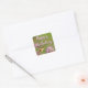 This cute happy birthday hummingbird square sticker features a beautiful photo of a Rufous hummingbird with beautiful wildflowers. Add your own custom message to make this design your own!