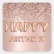 Adesivo Quadrado Feliz Aniversário - Letra Balão-Rosa com Brilho Do
