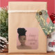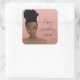 Adesivo Quadrado Feliz Aniversário, Mulher Negra Dourada, Rosa Blus