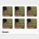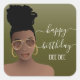 Adesivo Quadrado Feliz Aniversário Mulher Negra Dourada Sombra Verd