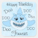 Feliz aniversário Personalizado Aniversário Tubarão-Bebê Doo Doo Doo com um tubarão azul para a festa de aniversário de um menino.