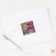 Adesivo Quadrado Feliz Aniversário Vermelho e Roxo Fuchsia #1