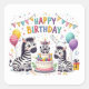Feliz Aniversário Zebras Fofas Celebrando Adesivo Quadrado