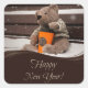 Adesivo Quadrado Feliz ano novo. Urso de Pelúcia.