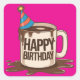 Adesivo Quadrado Feliz Campeonato de Café de Aniversário com chapéu