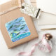 Um adesivo feliz do Halloween, com morcegos pretos voando no crepúsculo com a ascensão brilhante da lua de cheio sobre a crista das montanhas azuis pintadas com aquarela.