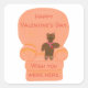 Estes adesivos bonitos apresentam a minha pintura de um ursinho de peluche sentado numa cadeira grande laranja. O urso está vestindo um cachecol rosa e tem um coração vermelho no peito. O texto da parte superior da cadeira diz, Feliz dia de os namorados. O texto na parte inferior da cadeira diz: "Quem me dera que estivesse aqui." O texto é escrito em uma fonte laranja vermelha e ambos podem ser personalizados nos formulários modelo. Obrigado por comprar CherylsArt no Zazzle.