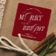 Feliz de design Elegante e de feriado brilhante em vermelho festivo e branco com fontes nostálgicas de script. Esta design de etiqueta de Natal totalmente editável inclui espaço para o seu nome para que você possa torná-la sua - o toque perfeito para o seu encapsulamento de presentes e design de embalagens nesta temporada de Natal!