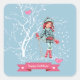 Adesivo Quadrado Feliz Férias. Young Girl Skier Christmas