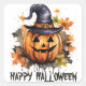 Adesivo Quadrado Feliz Halloween Mau Grinning Pumpkin Art