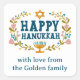 Adesivo Quadrado FELIZ HANUKKAH, Feriado floral judaico