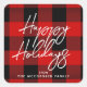 No topo de seus presentes de Natal com esses salgadinhos de Búfalo Xadrez de Feriados Felizes, Red Black Script Square. Este design rústico tem um fundo de xadrez de búfalo vermelho e preto e "Felizes Feriados" em letras grandes em branco, espalhadas pelo centro. Personalizado com o nome da família em letras simples e modernas. Clique na opção personalizar e siga o prompt.