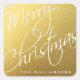 Um adesivo elegante de Feliz Natal com uma letra de escrita de caligrafia colocada contra um fundo de dourado falso chic. O adesivo perfeito para seus pacotes e presentes de férias. Adicione seu nome para personalizar.