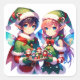 Bonita cor d'água anime garoto e elfos meninas segurando uma bandeja de brinquedos adesivos de Natal.