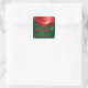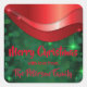 Design de autocolante quadrado de Natal personalizado com camadas metálicas brilhantes vermelhas e brilhantes sobre fundo verde cintilante. O texto é totalmente personalizável.