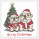 Adesivo Quadrado Feliz Natal Inglês Bulldog Santa Hats