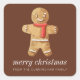 Adesivo Quadrado Feliz Natal Moderno Gingerpão de Cama de Aquarela