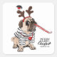 Adesivo Quadrado Feliz Natal | Pug Reindeer
