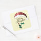 Adesivo Quadrado Feliz Natal Santa Chapéu Vermelho Dourado Verde