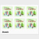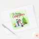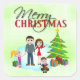 Manhã de Natal © Sunny Mars Designs. Os autocolantes quadrados com uma família de desenhos animados e a mãe e o pai entregando presentes de Natal aos seus filhos ou filho e filha com uma árvore de Natal e apresenta-se debaixo dela.
