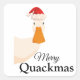 Adesivo Quadrado Feliz Quackmas, desenho animado de Natal Duck