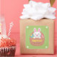 Coloridos de decoração para enviar suas saudações de Páscoa! Ele tem um coelho branco fofo aparecendo da cesta de ovos decorados com Páscoas, um ovo azul com estrelas amarelas e um ovo vermelho com fêmur e padrão de pontos. O fundo é uma textura verde com flores brancas de primavera. Adicione sua mensagem de Páscoa no espaço da cesta fornecido.