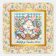 Adesivo Quadrado Felz pascoa com coelhinhos, ovos e flocos