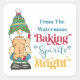 Compartilhe alguns dos seus biscoitos de férias favoritos e guloseimas com familiares e amigos. Inclua este estilo tipográfico de Espíritos Brilhantes na sua embalagem de qualidade cozida. Apresenta um Natal festivo bonito ou um gnomo de férias segurando uma pessoa com pão de gengibre e um pino rolante. Monograma com seu nome.