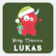 Adesivo Quadrado Feriado Engraçado do Monstro Vermelho de Natal