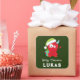Veja o rosto da sua criança acender este Natal quando você lhes dá um presente junto com este doce e engraçado adesivo do Monstro de Natal. Este adesivo de Natal para os presentes de criança apresenta um fundo verde-escuro festivo com um adorável monstro vermelho do Natal que tem um buzino listrado azul e branco. Ele está segurando um presente e tem um chapéu verde de Papai Noel. Personalize com o nome do seu filho. Perfeito para o Natal de 1rua do Bebê.
