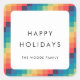 Etiqueta do adesivo Feliz Feriados. Um design de feriado de mosaico de cores simples e minimalista.